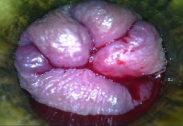 Figure 3 (C) – Active bleeding as seen in second-degree internal haemorrhoids